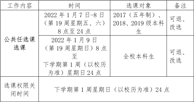 2021-2022学年第二学期公共任选课网上选课将于2022年1月7日(第19周星期五)早上8点开始,现将相关事项通知如下: 一、选课类别及选课对象