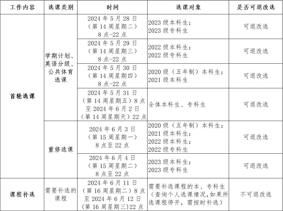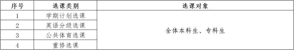 本、专科生2024-2025学年第一学期课程选课将于2024年5月28日(第14周星期二)早上8点开始,现将选课相关事项通知如下。 一、选课类别及选课对象