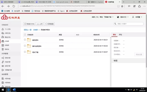 教师只需登录“智慧交大”进入“花椒网盘”点击“文档库”,即可看到共享的教学案例资料、操作资料及相关软件下载。如下图所示: