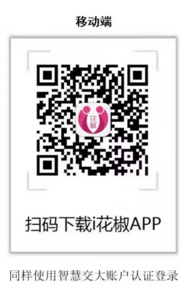 除此之外,也可使用“i 花椒”app 登录学习:扫码下载“i 花椒”app,使用智慧交大账号密码登录,在“我的课程”中打开学习。