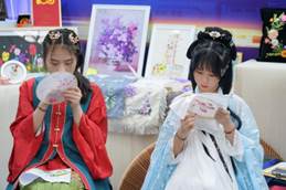 为了充分展示我校近年来劳动教育的成果,由校党委书记柳和生领衔、马克思学院部分老师参与建设并开设的《新时代高校劳动教育》在线开放课程首次在现场展厅开课。同时遴选出了以艺术学院、实训中心、人文学院等为代表的多项作品参加了此次现场展示。艺术学院仉春辉、丁磊及人文学院阮学云等老师通过弘扬中华优秀传统文化,结合党史学习教育,指导学生挖掘红色文化、传统工艺、民间技艺、非遗传承等文化元素,创作了木梳、浮雕及刺绣、钩针、刻纸等作品,同学们着古装进行现场工艺操作展示,优美的画面引得众多参观者驻足欣赏、拍摄。艺术学院夏海斌老师指导学生利用虚拟仿真技术,模拟出了完整、逼真的八大山人VR系统,观众可通过穿戴设备参观景点、临摹书法等,参观者纷纷前来展区亲身体验。为结合产业新业态、劳动新形态,弘扬工匠精神,实训中心展示了学生在工程训练综合能力大赛中的劳动作品,着重选择物流业、工业、服务业等项目,如智能配送无人机、水下管道智能巡检机器人以及热能驱动自主避障小车等学生劳动作品,作品的新颖性吸引了众多参观者前来展区观赏、交流。