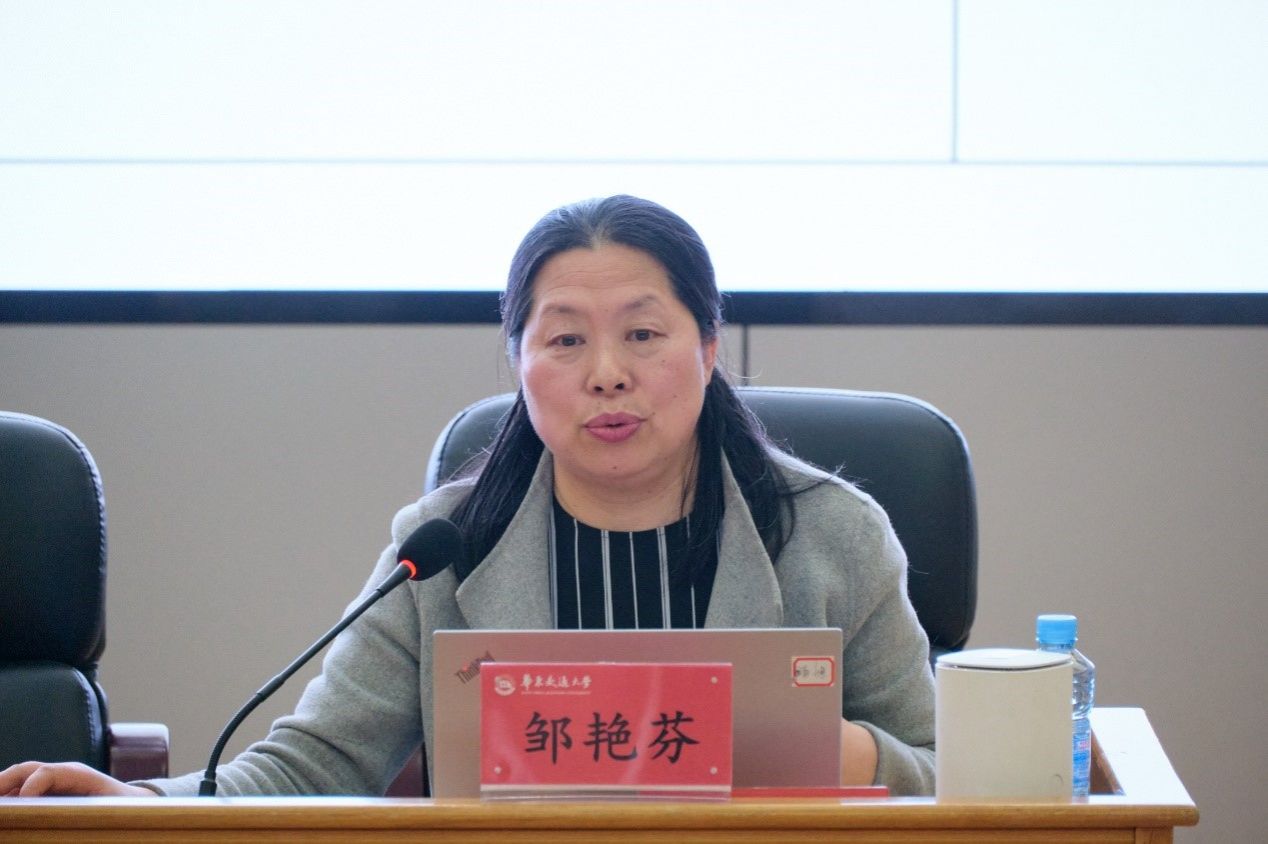 邹艳芬教授从审核评估工作进度安排、指标解读、材料准备三个方面入手,多角度全方位地把新一轮审核评估的重大意义“传到位”、精髓要义“说清楚”、任务要求“讲明白”;同时,通过邹教授分享的江西财经大学审核评估经验做法,也生动展示了新一轮审核评估兄弟高校的“样板间”,为我校推进新一轮审核评估工作提供了可参考的做法和经验。